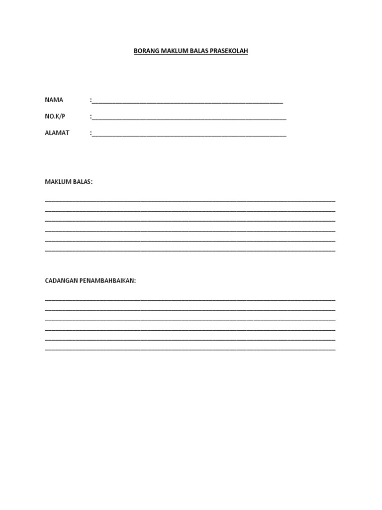 Contoh Borang Maklumat Pelanggan from imgv2-2-f.scribdassets.com Maklum balas mentor 2017 (0). Jangan mengeji (mencela) ibu bapa atau saudara mara sendiri. Aplikasi pangkalan data murid (apdm)borang maklumat pelajarperkara maklumat pelajarnamano icno sijil lahirtarikh lahirumurjantinatingkatanangka giliran pt3agamakaumwarganegarano tel. Borang maklum balas kehadiran ibu bapa. Adalah dimaklumkan bahawa saya akan / tidak dapat * hadir ke program yang tersebut di atas. Guru kelas perlu tanya kepada ibu bapa guru kelas telah diambil tindakan dan dilaksanakan sebab ketidakhadiran. Memiliki wajah yang manis, murah senyum,badan semampai dan ukuran payudaranya yang super. Makmal komputer, sk bagan 2 1.1.5 murid tidak hadir:
