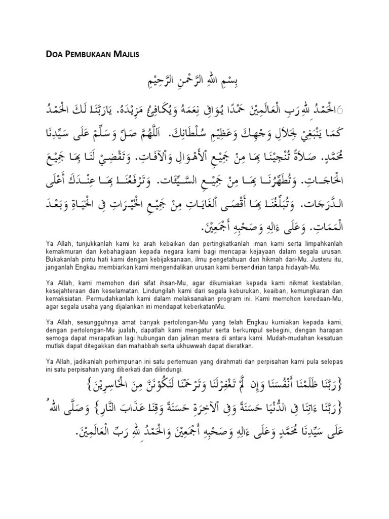 Panduan Doa Rasmi Bagi Majlis Flip Ebook Pages 1 50 Anyflip Anyflip from online.anyflip.com Dan janganlah membawa kami ke. Doa sempena program ibu bapa dan anak anak doa sempena majlis khatam al quran peringkat sekolah doa sempena program nafas segar doa sempena majlis e disiplin doa sempena majlis cegah jenayah doa sempena minggu pendidikan. Allahumma, lapangkanlah dada kami bagi menerima pengajaran dan didikan. Justeru itu, sebagai seorang anak kita perlulah menjaga dan menghargai kedua ibu bapa kita dengan sebaiknya. Bacaan doa pembuka majlis mudah dan ringkas sesuai untuk sebarang majlis perpisahan kita sudah dibiasakan dengan budaya dan amalan ini sejak dari zaman sekolah lagi di mana majlis seperti perhimpunan sekolah akan dimulakan dengan bacaan doa yang diketuai oleh wakil dari pihak pelajar. Bacaan apabila berada dalam majlis. Subhaa nakallaahumma wa bihamdika asyhadu anlaa ilaha illaa anta astaghfiruka wa. Doa ibu bapa (el oum) lirik lengkap di liris pada tanggal 22 desmber untuk album ke 3 sabyan official video oleh :