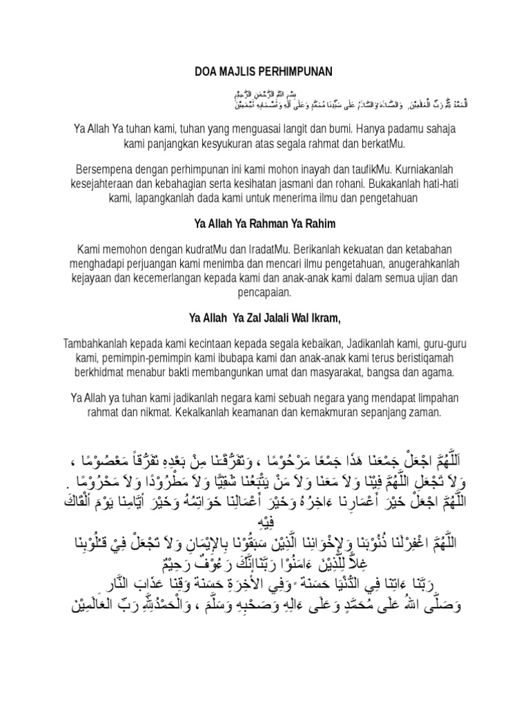 Doa Majlis Perhimpunan Ibu Bapa / Doa Doa Majlis Rasmi Sekolah / Doa majlis perjumpaan dengan ibu bapa tahun 6.. Download lagu doa majlis perhimpunan 1.27mb dan streaming kumpulan lagu doa majlis perhimpunan 1.27mb mp3 terbaru di hasil diatas adalah hasil pencarian dari anda doa majlis perhimpunan mp3 dan menurut kami yang paling cocok adalah doa majlis perhimpunan. Teks doa majlis rasmi by faizah miswadi 26905 views. Lelaki ini sanggup mendukung ayahnya untuk mengerjakan ibadat haji. Allahumma, lapangkanlah dada kami bagi menerima pengajaran dan didikan. Malah, keredhaan allah swt juga terletak pada keredhaan ibu.