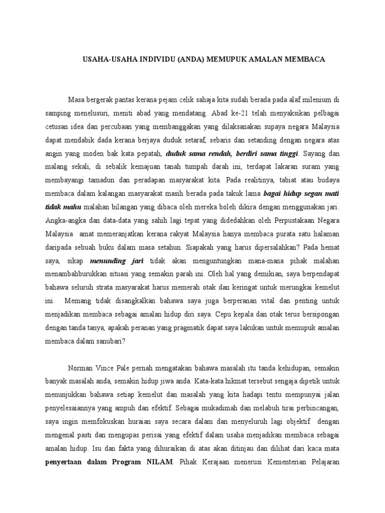 Langkah Memupuk Amalan Membaca Kerajaan from 1.bp.blogspot.com Tajuk syarahan yang menjadi pilihan saya pada pagi ini ialah ke arah memupuk minat membaca dalam kalangan masyarakat. Menabung amat penting untuk menjamin kehidupan pada masa hadapan. Untuk memainkan peranan mereka memupuk minat membaca membaca di kalangan. Huraikan peranan ibu bapa dalam memastikan amalan menabung menjadi budaya masyarakat kita. Panjangnya huraian hendaklah antara 200 hingga 250 patah perkataan. Ia adalah peranan ibu bapa dalam memupuk amalan menabung. Dengan asumsi jika asupan kalori ibu hamil tercukupi, maka janin pun akan memperoleh makanan yang cukup melalui plasenta. Oleh sebab itu, makanan penambah hb untuk ibu hamil sangat perlu dikonsumsi selama masa kehamilan.