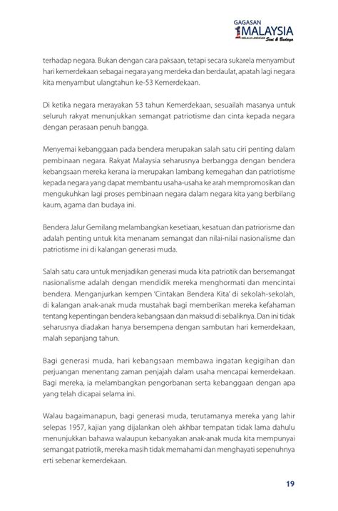 Cogan Kata Semangat Patriotik Cikimm Com from imgv2-2-f.scribdassets.com Mohd shah farhan semangat patriotik semakin luntur dalam kalangan masyarakat di negara kita pada masa ini seperti yang didakwa oleh banyak pihak. S emangat patriotisme ialah semangat cinta akan negara. Sebenarnya terdapat banyak cara yang boleh dijalankan untuk meningkatkan semangat patriotik dalam kalangan masyarakat di negara kita. Semangat patriotisme merujuk kepada perasaan cinta akan negara yang mendalam dalam diri seseorang. Langkah memupuk semangat patriotik patriosme dalam kalangan generasi muda. Perdana menteri, yang amat berhormat dato' seri najib tun abdul razak menyatakan bahawa semangat patriotisme perlu dipupuk dalam diri generasi muda di negara ini supaya rakyat di negara lain dapat menghormati dan memandang mulia kepada kita. Kesimpulannya pelbagai cara yang boleh dilaksanakan bagi memupuk semangat patriotik dalam kalangan generasi muda. Semangat ini mampu mempengaruhi masyarakat untuk mengutamakan kepentingan negara berbanding dengan kepentingan diri.